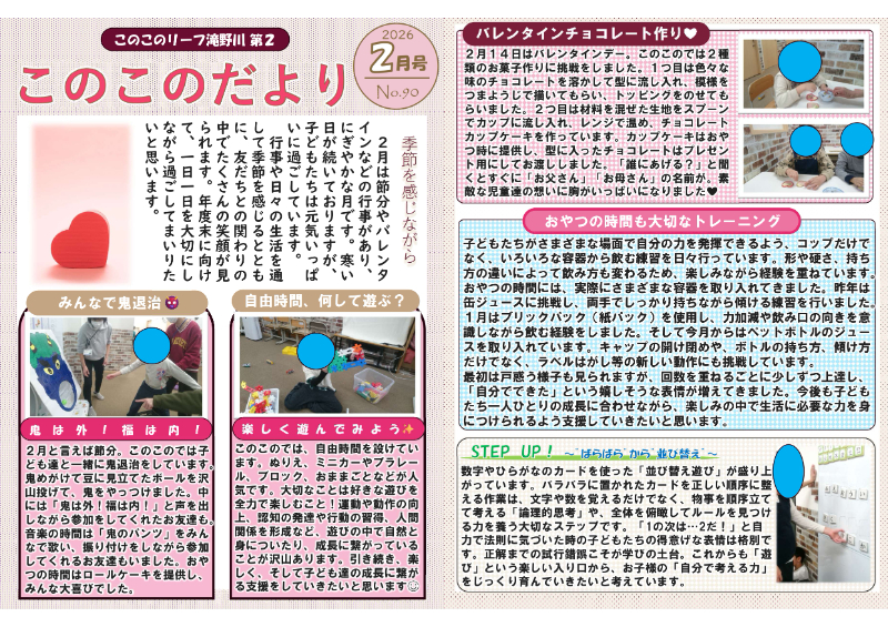 放課後等デイサービスこのこのリーフ滝野川は、北区・板橋区・文京区・豊島区で障がいのある児童が放課後の余暇活動を児童福祉法に基づき社会生活を送る上で必要なことを支援するサービスです。土曜日も朝から運営しています。